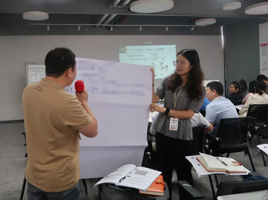 賀老師系統(tǒng)地講授了項(xiàng)目管理的基礎(chǔ)理論、基本概念、規(guī)范流程、工具模型、典型案例,通過(guò)分組討論、場(chǎng)景模擬、游戲互動(dòng)等豐富多彩的培訓(xùn)形式,強(qiáng)化了大家對(duì)相關(guān)知識(shí)點(diǎn)的理解和掌握。