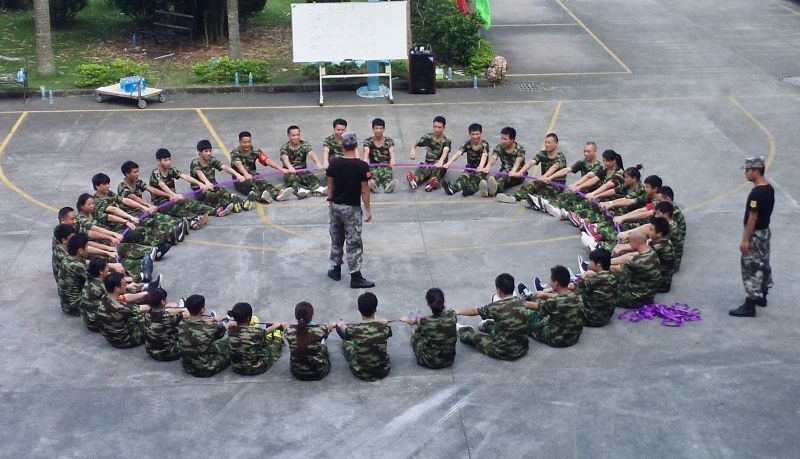 第二天我們迎來了我們的“老朋友”百年特訓營的教官,展開短暫的一天拓展培訓,至此學員之間多了一種關系,那便是“戰友”!短短的一天拓展培訓中,戰友們體驗到了“組建團隊”、“創新贏家”、“共同進退”、“解救人質”四項團隊任務,每個任務都是對戰友間信任度、團隊協作能力,耐力的挑戰,但是一個個任務下來戰友們都出色的完成了任務。在“解救人質”的任務中36位戰友挑戰了3500圈的勝利圈,有戰友在結束后說,“自己真的快不行了,最后都是靠毅力堅持下來的”,有些戰友甚至因此磨破了皮!“一開始就是3500圈,不達到不放手,即使很痛苦但是咬咬牙就是挺過去了,如果失敗了就是個大笑話,不要讓這成為笑話,要讓大家為之崇拜和認可。”有為戰友在分享總結中這樣說道。