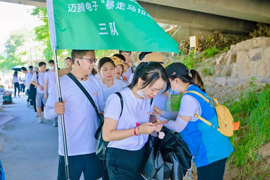 隨著行程的推進(jìn),大家體力已消耗過(guò)半,持續(xù)的行走讓大家的腿已開(kāi)始發(fā)抖,有些小伙伴行進(jìn)的速度也有了明顯下降,但大家仍然步履不停,在簽到點(diǎn)互相分享食物與水、攙扶起體力較弱的同事,徑直向目的地行進(jìn)。
